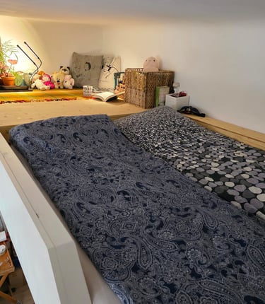 Entstanden ist ein Raum-im-Raum-Konzept, das Stauraum, Funktionalität und Gemütlichkeit vereint – perfekt auf die Bedürfnisse eines wachsenden Kindes zugeschnitten.